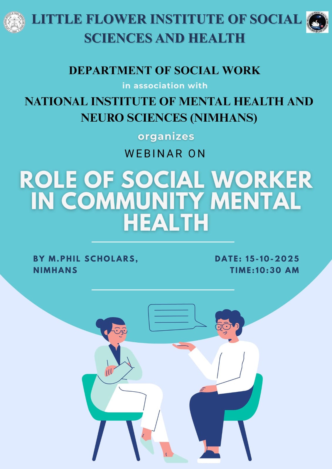 NIMHANS is providing an online session for the third year BSW students the role of social worker in community development