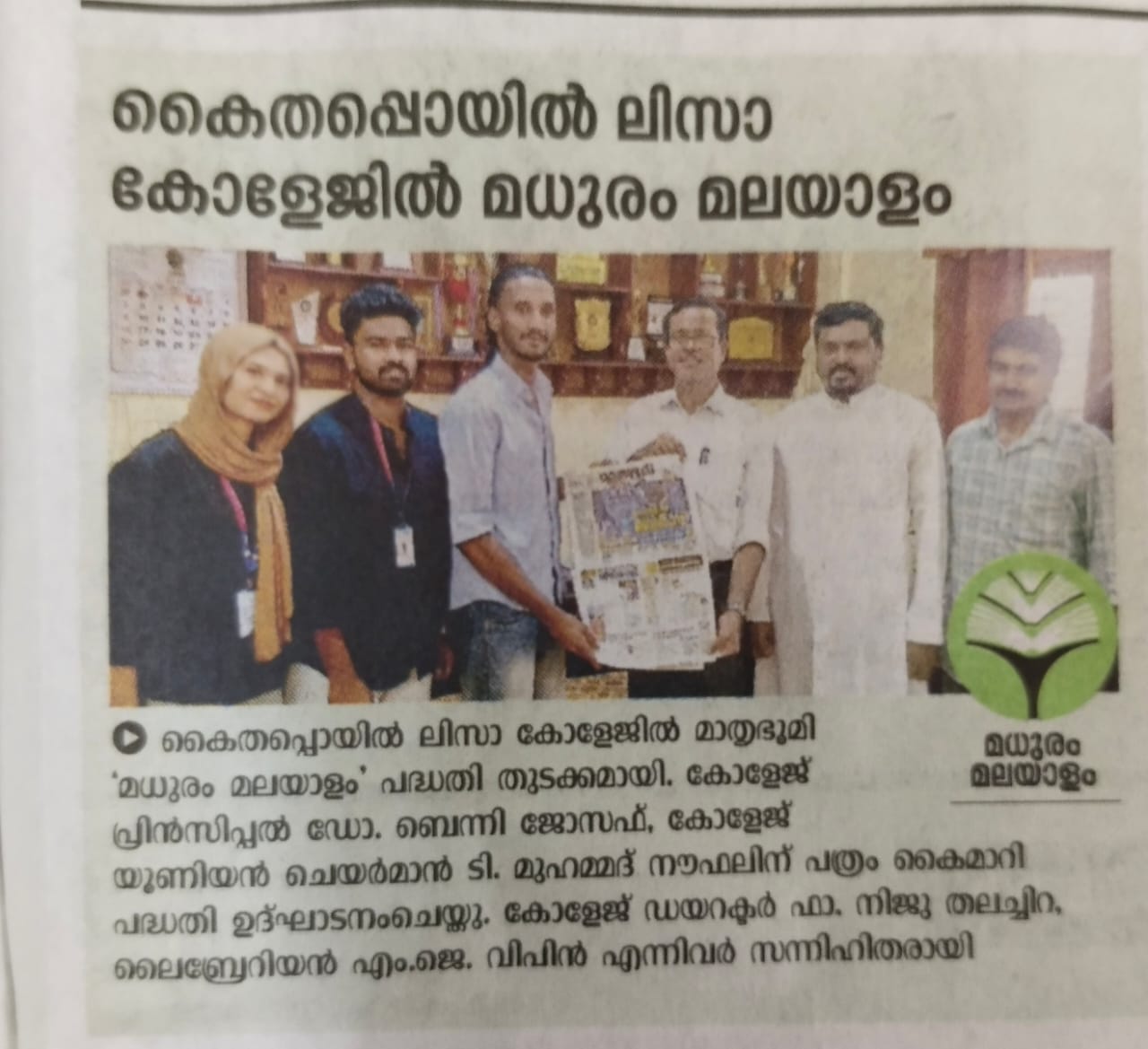 College Library introduced Mathrubhoomi Daily's Raeding project in the campus